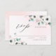 Modern chic watercolor Eucalyptus greenery and anemone floral on blush pink background, with trendy RSVP script, elegant and stylish, great RSVP card for rustic wedding, botanical wedding and beach wedding.