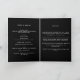 An elegant 4-page program. A black background, and watercolored golden eucalyptus sprigs. Space for your photo on the front. Personalize and add name, dates and your text.