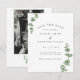 Mark your date with a touch of modern elegance! This chic save-the-date card features a minimalist design with crisp black and white typography, accented by delicate eucalyptus illustrations.