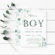 Eucalyptus Botanical Letter Boy Baby Shower Invitation