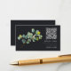 This RSVP card combines modern convenience with natural elegance. The card features a stylish dark background, contrasted beautifully by a delicate eucalyptus branch in soft green tones. A prominent QR code is placed to the right, offering guests a simple, tech-savvy way to respond, while the “please rsvp” script adds a personal, inviting touch. The clean, minimalist layout makes this card ideal for contemporary weddings or events that blend modern technology with natural elements.