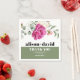 This wedding paper napkin showcases a beautiful eucalyptus branch embellished with lush greenery, delicate pink roses, and white flowers positioned at the top. The addition of sage green at the bottom enhances the overall elegance of the design, perfectly harmonizing with the sleek typography of the minimalist text.