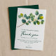 Express heartfelt gratitude with this exquisite wedding table thank you card, beautifully adorned with a graceful eucalyptus branch and lush green leaves in soft watercolor style. The botanical illustration brings a fresh, garden inspired elegance to your celebration, blending pretty foliage accents with timeless sophistication.