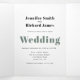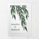 Eucalyptus branch with leaves winter tri-fold wedding invitation. A lovely design for your wedding. The cover features cascading branches of viridian green eucalyptus leaves and the names of the couple. The inside panels include details of your wedding and RSVP which can be detached. There is a photo of the couple on the outside back.