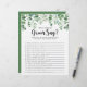 This eucalyptus bridal shower what did the groom say game is a perfect for a rustic wedding shower. The design features hand-painted watercolor green eucalyptus, inspiring natural beauty.