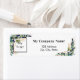 Eucalyptus greenery and faux gold foliage. Decorated with faux glitter dust. Personalize and add your business logo, name and address. Black letters.