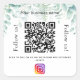 White background, decorated with eucalyptus greenery. Personalize and add your business name, your own qr code to your Instagram account and a text. With the text (x2): Follow us!