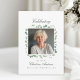 This Celebration of Life funeral invitation combines elegance and warmth with a soft eucalyptus wreath framing a treasured photo. Designed in calming green tones, it offers a serene and modern way to honor the memory of a loved one.