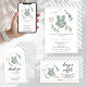 Capture the essence of a baby girl shower with watercolor green baby clothes, eucalyptus, toys, and greenery on advice for parents cards.