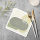 With a color palette from ivory to spring green and dark moss, this wedding collection features a handwritten script font and eucalyptus leaf accents to add that wonderful modern touch. The coordinating paper napkin shown here has all the above with a striking background of arched shapes that makes it stand out from the crowd. Add your names and wedding date using the provided template. Search ID901 to see other color choices and coordinating pieces for this unique wedding collection.
