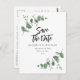 Eucalyptus Greenery foliage modern minimal elegant contemporary garden party Wedding save the date postcard. Simple contemporary botanical design. Sage green, navy blue, black and white elegant modern colorway suits spring, summer fall, autumn and whiter wedding ceremonies.