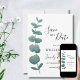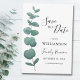 It features a simple watercolor eucalyptus sprig with elegant typography.