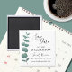 It features a simple watercolor eucalyptus sprig with elegant typography.