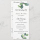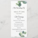Rustic chic watercolor eucalyptus foliage wedding program. Personalize text font style, color, and size.