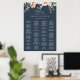 This eucalyptus garden rose alphabetical seating chart is perfect for a rustic wedding. The design features pink, blush, yellow rose flowers with eucalyptus leaves in a dark navy blue background.