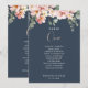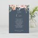 This eucalyptus garden rose floral table number 1 seating chart is perfect for a rustic wedding. The design features pink, blush, yellow rose flowers with eucalyptus leaves in a dark navy blue background.