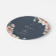 This eucalyptus garden rose floral wedding cake paper plate is perfect for a modern wedding reception. The design features pink, blush, yellow rose flowers with eucalyptus leaves in a dark navy blue background.