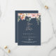 This eucalyptus garden rose floral wedding save the date is perfect for a rustic wedding. The design features pink, blush, yellow rose flowers with eucalyptus leaves in a dark navy blue background.
