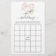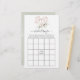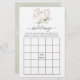 Bridal shower bingo game card featuring anemone flowers and eucalyptus leaves in a rose gold geometric heart.