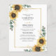 Eucalyptus Geometric Wedding Sunflower Invitation. Create a modern Sunflower Floral Budget Wedding invitation card with this cute template featuring beautiful rustic floral bouquet, geometric gold effect frame, with modern simple typography.