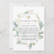 Wild forest woodland eucalyptus herbarium reduced wedding guest list announcement with gold geometric frame and silver sage watercolor wash reverse. In these uncertain times, it can happen that you may have to hold a smaller wedding than originally planned. This announcement card will take away the awkwardness and take a load off your mind! You can furthermore provide an option to join you for a virtual ceremony.