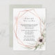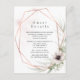 Wedding guest details enclosure card featuring anemone flowers and eucalyptus leaves in a copper geometric frame.