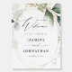 Welcome in your guests to your wedding or party with your photo and name on your Eucalyptus Glow Gold Greenery Welcome Foam Board.