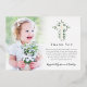 Eucalyptus Gold Cross Photo Baptism Thank You Card