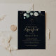 Eucalyptus Gold Floral Blue Wedding Breakfast Invitation