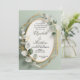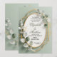 This invitation is special for its chic, contemporary fusion of geometric structure and organic botanicals. The bold, angular gold frame provides a modern edge that beautifully contrasts with the soft, flowing watercolor eucalyptus leaves. The clean sage green palette and glitter accents make it ideal for a sophisticated, modern, or destination wedding.