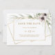 This eucalyptus gold geometric save the date is perfect for your elegant boho wedding. It is designed with simple bohemian white and purple anemone flowers, simplistic watercolor sage green leaves, and modern gold foil winter frames. With the combination of white floral and simple rustic greenery, you're sure to create the atmosphere of your dreams.