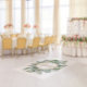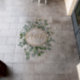 This floor decor features our delicate eucalyptus gold glitter - code 02 design adjusted on a large option perfect for the couple's monogram or initials and ideal for couples looking to make a lasting impression from the moment guests enter.