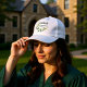 Modern eucalyptus greenery graduation trucker hat with delicate gold accents, designed to add a cohesive and stylish touch to your graduation celebration. A versatile and customizable accent for high school or college graduates.