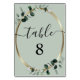 Emerald Hued Eucalyptus on Sage Romantic Calligraphy Wedding Table Number Cards... Emerald-hued watercolor eucalyptus leaves on faux gold metallic frame your reception table numbers on our custom designed wedding table card template. You can easily change the number text on the personalization template... just click on the table number card and enter each number on the template one at a time, adding them to your cart before you make the next one.