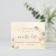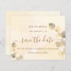 A golden watercolored background decorated with golden eucalyptus foliage. Personalize and add the date, place and your names. Golden colored letters. The text: Save the Date is written with a large trendy hand lettered style script.