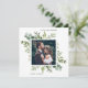 This photo thank you square card features painted watercolor eucalyptus, green leaves with a square frame. This will be perfect for weddings, graduations, anniversaries and similar events.