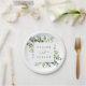 This wedding paper plate features painted watercolor eucalyptus, green leaves and a square frame. For more advanced customization of this design, Please click the "Customize further" link. Matching items are also available.