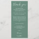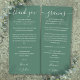 An elegant eucalyptus green wedding celebration thank you reception card that can be personalized front and back with your special thank you message in different languages, set in stylish typography. A special keepsake, thank you to your guests. Designed by Thisisnotme©