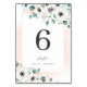Modern chic watercolor Eucalyptus greenery and anemone floral on blush pink background, with trendy table script, elegant and stylish, great wedding table number cards for rustic wedding, botanical wedding and beach wedding.