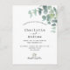 A chic white background. Decorated with eucalyptus leaves, sprigs, greenery. Personalize and add your names and wedding details. Black letters.