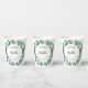 A white background. Decorated with an eucalyptus greenery wreath. Personalize and add a date and name.