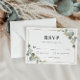 A greenery theme with green eucalyptus and a geometric frame. You can personalize the features of this card