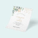 A chic white background. Decorated with green watercolored eucalyptus leaves, sprigs, greenery and a faux gold sprig. Golden hearts. Personalize and add your names and wedding details. Black letters.