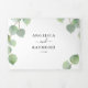 Display all the details of your wedding with this elegant tri-fold 3 in 1 wedding invitation featuring a classic white background, black calligraphy and cursive font and watercolor eucalyptus greenery foliage with faux gold foil accents. It includes a photo of the happy couple, and wedding invitation. Guests can easily cut away the RSVP postcard and pop it in the mail! Easily edit all of the information with your wedding details using the template provided.