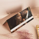 The unique folded format adds a touch of refinement. One side of the card is dedicated to a cherished photo of the couple, along with their names and the wedding date, creating a personalized keepsake for your guests. The other side provides space for the table number and the guest's name, ensuring easy seating arrangements.