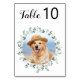 Table numbers by from your pets! Include your best dog, best cat and any pet in your wedding with his own table numbers for your guests. Perfect for dog lovers, and a special dog table numbers will be a hit at your wedding. Simple yet elegant white with eucalyptus leaves.