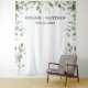 Eucalyptus Greenery Modern Wedding Backdrop. A beautiful watercolor eucalyptus leaves design. Personalize with the bride and groom's names and date.
