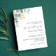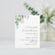 A chic white background. Decorated with green watercolored eucalyptus leaves, sprigs, greenery and a faux gold sprig. Personalize and add your names and wedding details. Black letters.