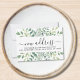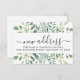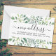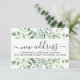 This budget-moving announcement mini card is decorated with watercolor eucalyptus greenery.