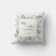 This throw pillow features a thick border of lush greenery, eucalyptus and light green flowers. The design offers an elegant script for "Mr & Mrs" and custom text for the name. This is a perfect keepsake gift for any newlywed couple.